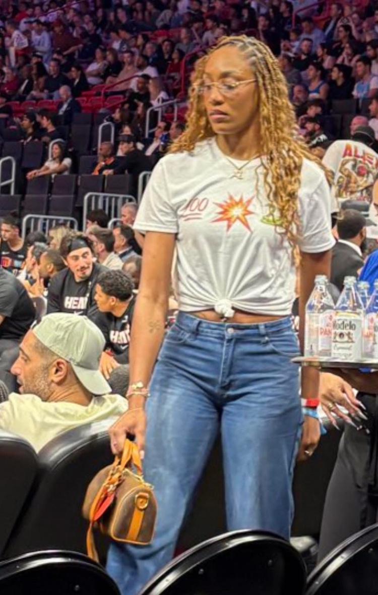 T恤的3个图案:100(张伯伦)、Bam(阿德巴约)、曼巴(科比),指目前NBA单场得分前三人